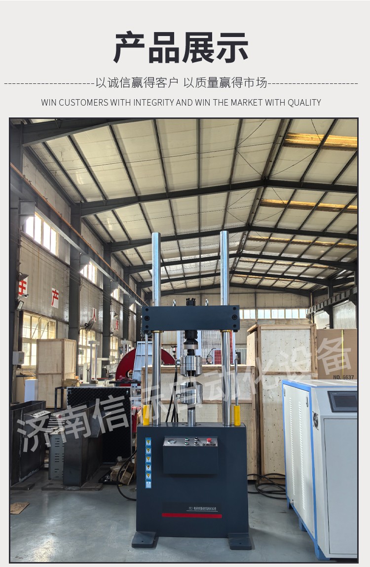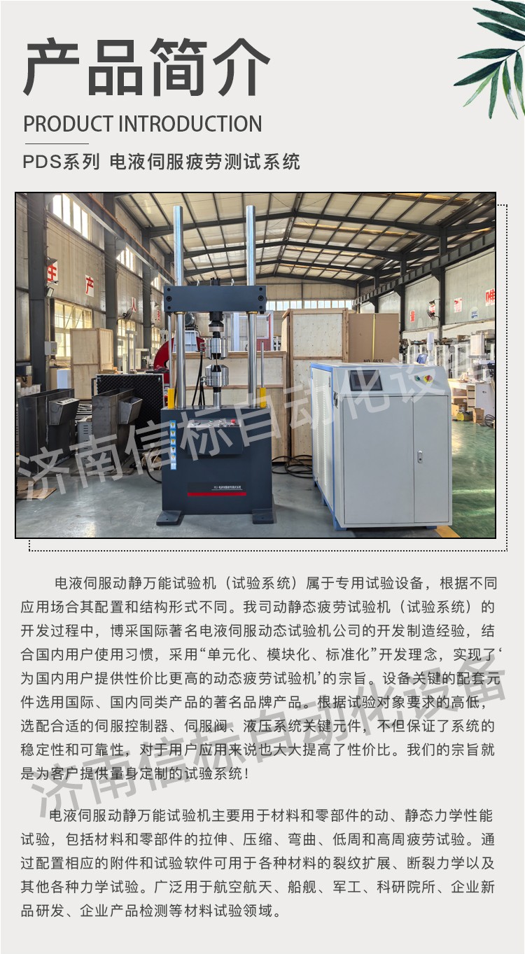 主機 主機為雙立柱加橫梁底座(立柱表面電鍍硬鉻)框架式結(jié)構(gòu),伺服直線作動器下置(或者上置)結(jié)構(gòu)。主機作用是提供試樣連接接口,接受程序指令完成試樣的加載。其突出特點如下: 4.1.1主機為雙立柱框架式結(jié)構(gòu),橫梁采用液壓油缸控制升降、液壓缸控制夾緊式結(jié)構(gòu),使試驗調(diào)整、操控方便。特殊的液壓油路設(shè)計既可以保證試驗的穩(wěn)固可靠,可以在非試驗狀態(tài)時橫梁保持鎖止不動。 4.1.2橫梁具有很高的剛度和強度。同時造型具有立體感,美觀大方。 4.1.3橫梁升降、鎖緊油缸的密封元件采用進口產(chǎn)品,品質(zhì)可靠,結(jié)構(gòu)獨特。 4.1.4立柱外表面采用電鍍硬鉻處理,進一步提高外形的美觀程度,同時提高防腐蝕能力。 4.1.5橫梁操控(升降、夾緊)驅(qū)動模塊采用高品質(zhì)液壓元件集成,控制臺設(shè)置符合人機工程學原理設(shè)計設(shè)計的操作臺,便于試驗者操作。 4.1.6伺服直線作動器與工作臺剛性連接,內(nèi)置非接觸式高頻響LVDT位移傳感器,外置國產(chǎn)航空品質(zhì)伺服閥,7Mpa下流量為58L/min。負荷傳感器采用Vishay世銓試驗機專用傳感器。 4.1.7設(shè)計由精度不大于5u國產(chǎn)溫州黎明精密濾油器以及具有消脈、蓄能功能的進回油路蓄能器組成的中繼濾油穩(wěn)壓模塊。 4.1.8單元化、標準化、模塊化設(shè)計的伺服直線作動器具有低阻尼、高響應(yīng)、高壽命、大間隙設(shè)計的特點,設(shè)計理念與MTS公司等同。作動器的密封元件全部采用進口伺服作動器專用高速密封元件,加之作動器活塞桿的支撐打破傳統(tǒng)設(shè)計,采用非金屬支撐、大間隙設(shè)計,具有高速不燒結(jié)自潤滑的特點。