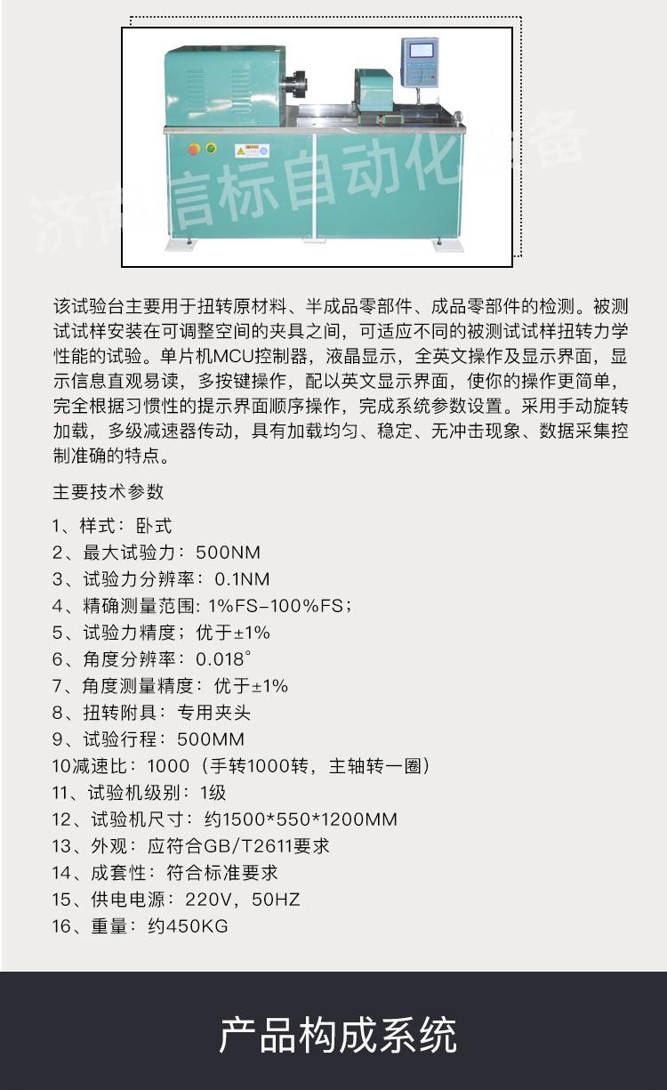1、可以實現合格性試驗:判定扭矩扭角間的對應關系,觀察試驗是否變形、或是破壞