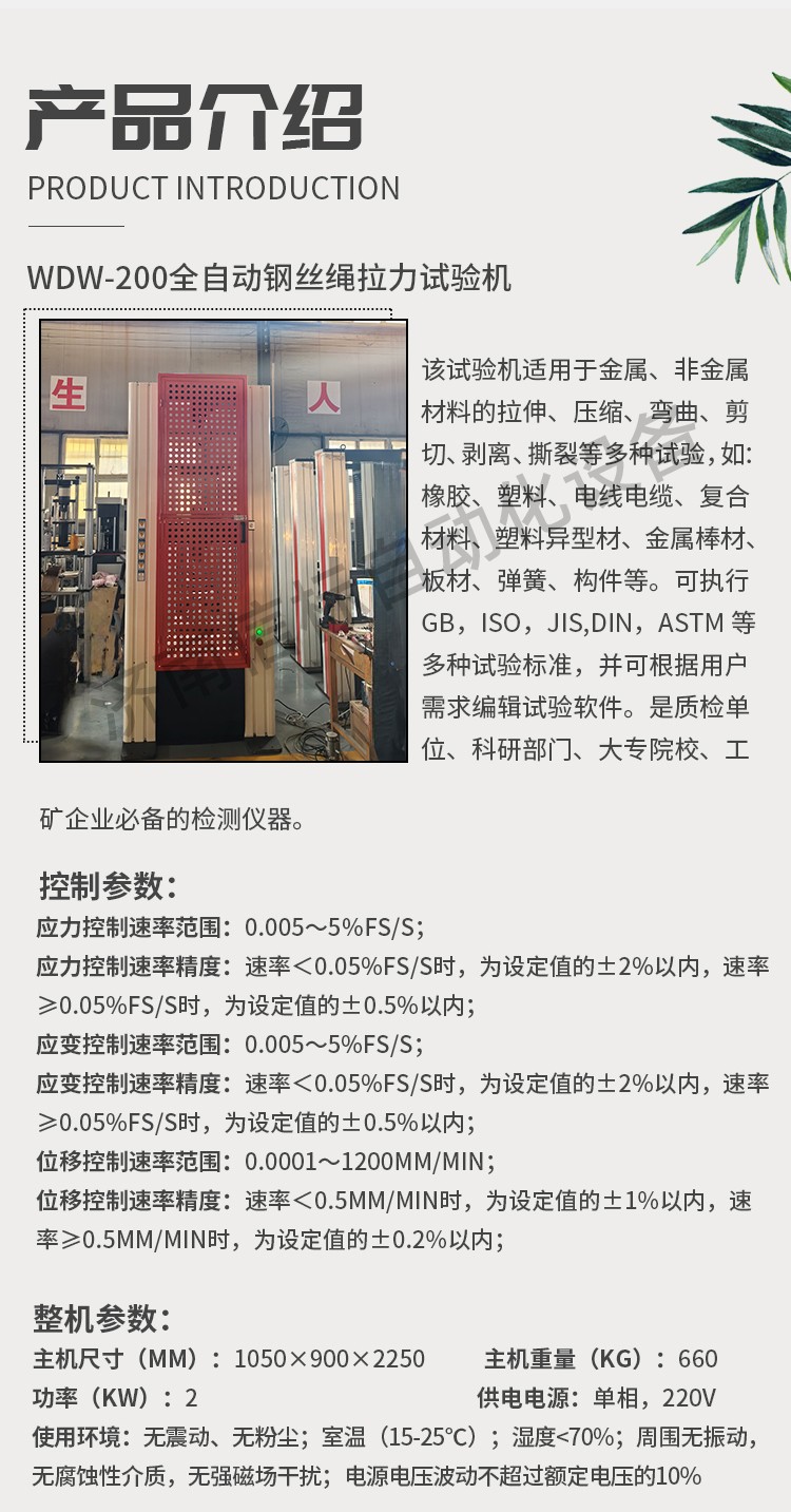 WDW-200全自動(dòng)鋼絲繩拉力試驗(yàn)機(jī)