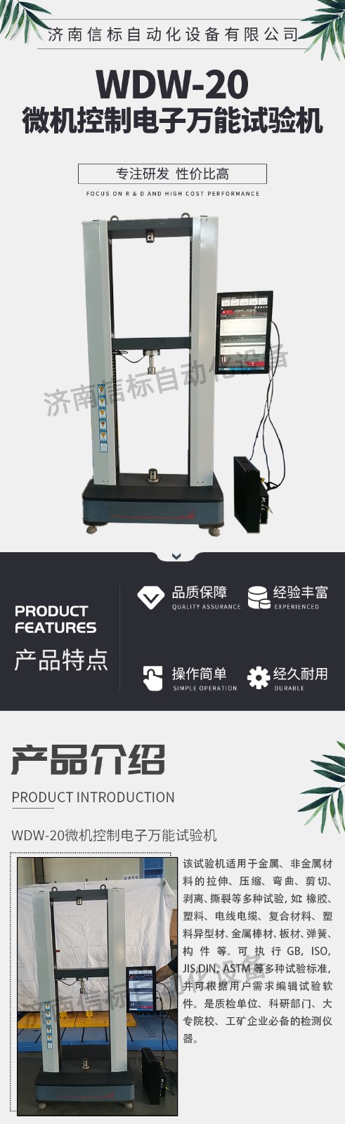 當前位置:首頁 > 產品中心 > 微機控制電子萬能試驗機 > WDW-20微機控制電子萬能試驗機材料抗拉強度拉伸測試儀器